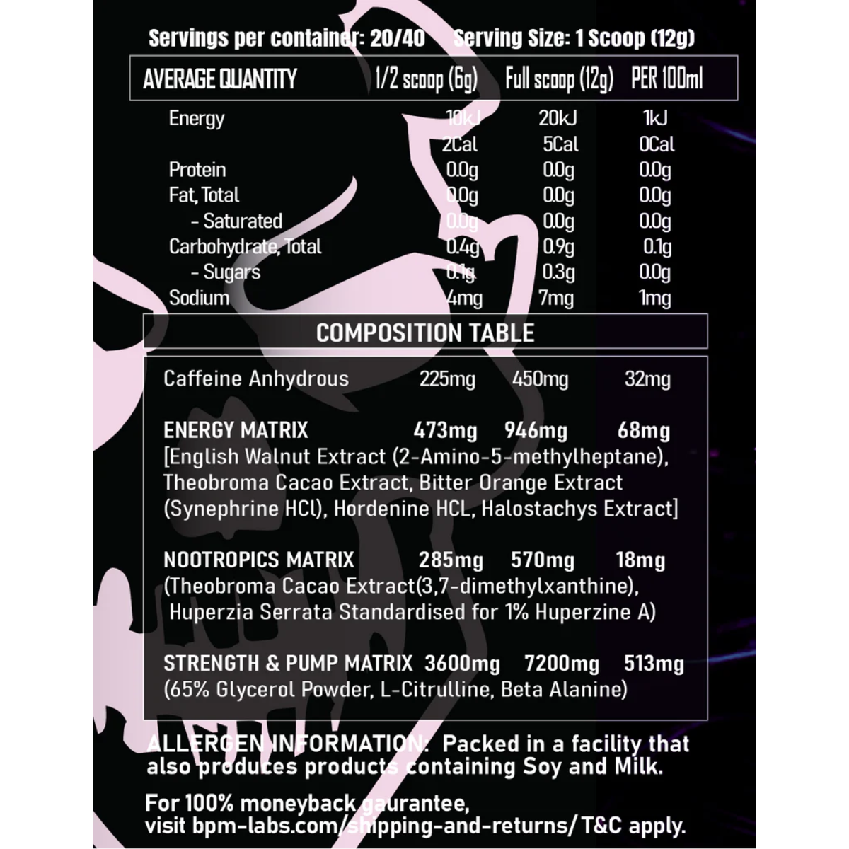 - Mix 1 scoop with 300-400ml of cold water and consume 15-30 minutes before training.