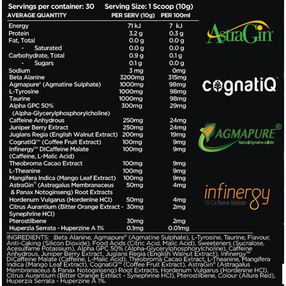Mix one scoop of BPM Labs The One with 200–300ml of cold water and consume 15–30 minutes before training. Due to its high stimulant content, assess your tolerance by starting with half a scoop.