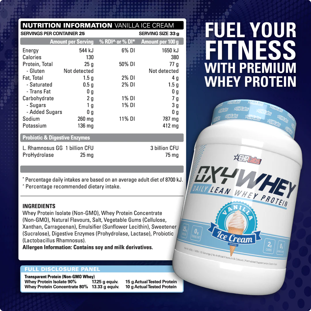 EHP Labs OxyWhey is a high-quality, lean protein blend designed to support muscle recovery,  Weight loss, and overall well-being. Packed with Whey Protein Isolate (WPI), Whey Protein Concentrate (WPC), and Micellar Casein, this formula provides a slow and fast-release protein matrix to fuel your muscles and enhance recovery and support muscle growth.