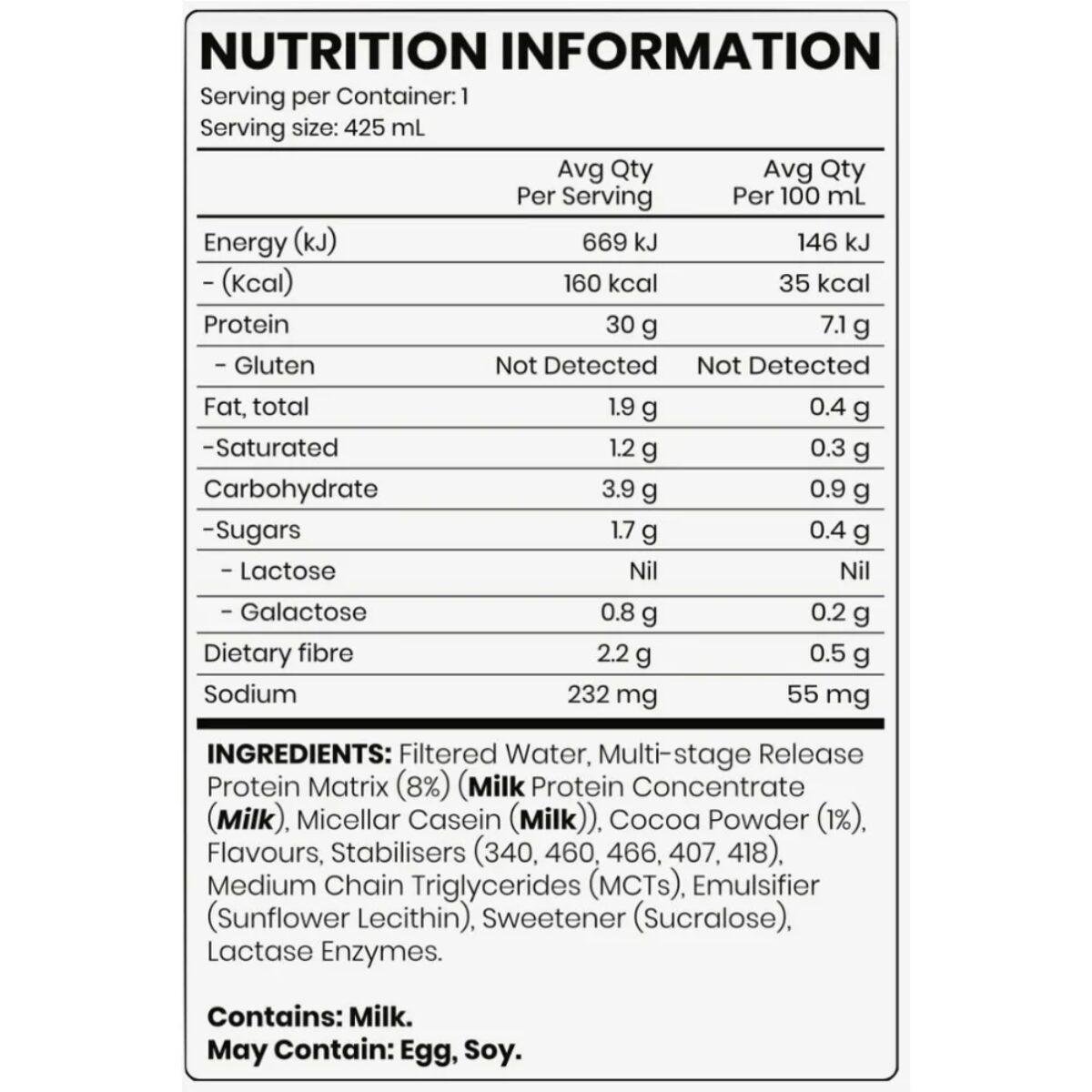 Designed for convenience, this ready-to-drink protein shake combines fast and slow-digesting proteins to help keep you feeling fuelled for longer. With just 150 calories and 2g of sugar, it strikes the ideal balance between great taste and smart nutrition. Lactose free and easy to digest, it’s a go-to choice whether you’re on the move, post-workout, or need a quick protein boost between meals.