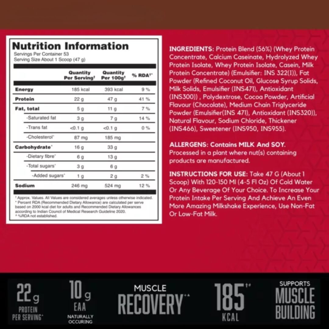 ✔ Multi-Source Protein Blend – Contains whey, casein, egg, and milk proteins for sustained amino acid release.