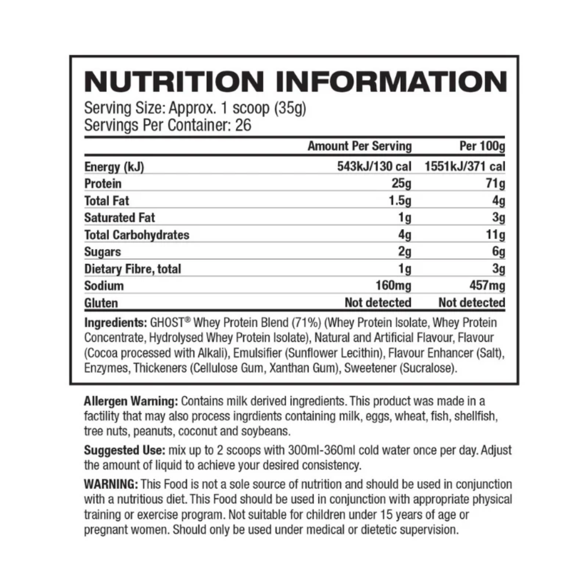 Fuel your workouts and recovery with Whey by Ghost Lifestyle, a premium blend of whey protein isolate, concentrate, and hydrolysed whey. Delivering 25g of protein per serving with minimal carbs and fat, this high-quality protein powder supports muscle repair, strength, and lean muscle growth. With a fully transparent label and delicious flavours, it’s the perfect addition to your daily nutrition.