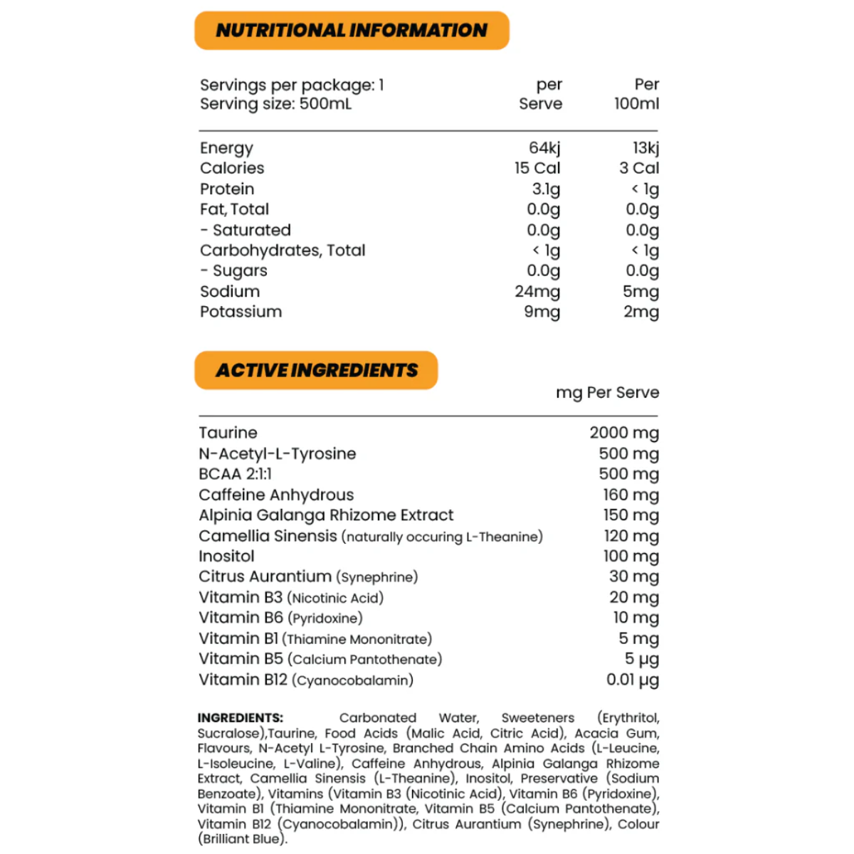 – Perfect ratio of L-Tyrosine, L-Phenylalanine and L-Theanine for that clean “dialled in” focus without the jitters or crash.